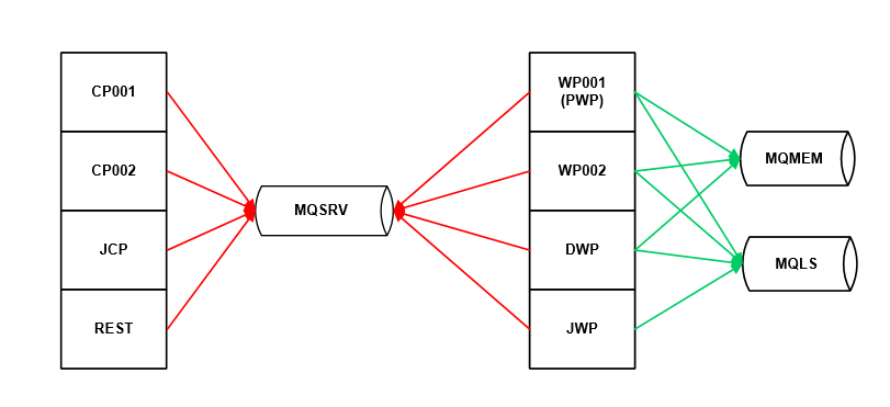 The MQLS table is used mainly by the primary work process (PWP) as a local memory for various management tasks of the server processes.