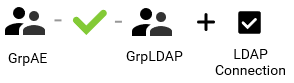 - The AE user group "GrpAE" is mapped to the LDAP group "GrpLDAP".