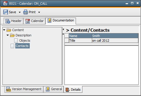 The example shown below retrieves the values of the attributes "Name" (enumeration type) and "Title" (text type). The contents "Smith" and "on call 2012" are written to the activation report.